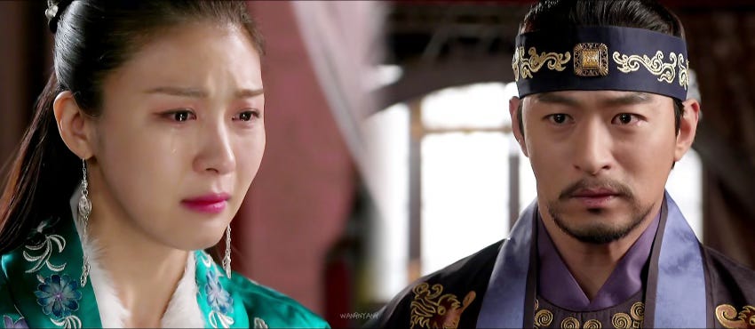 Pour renforcer la position de Goryo, le mariage de WangYu devait être un mariage d’alliance. C’est exactement ce qui se passe lorsqu’il croit Seungyang morte : il est contraint par l’empire Yuan de se marier avec une femme choisie pour lui, et il ne PEUT RIEN FAIRE.