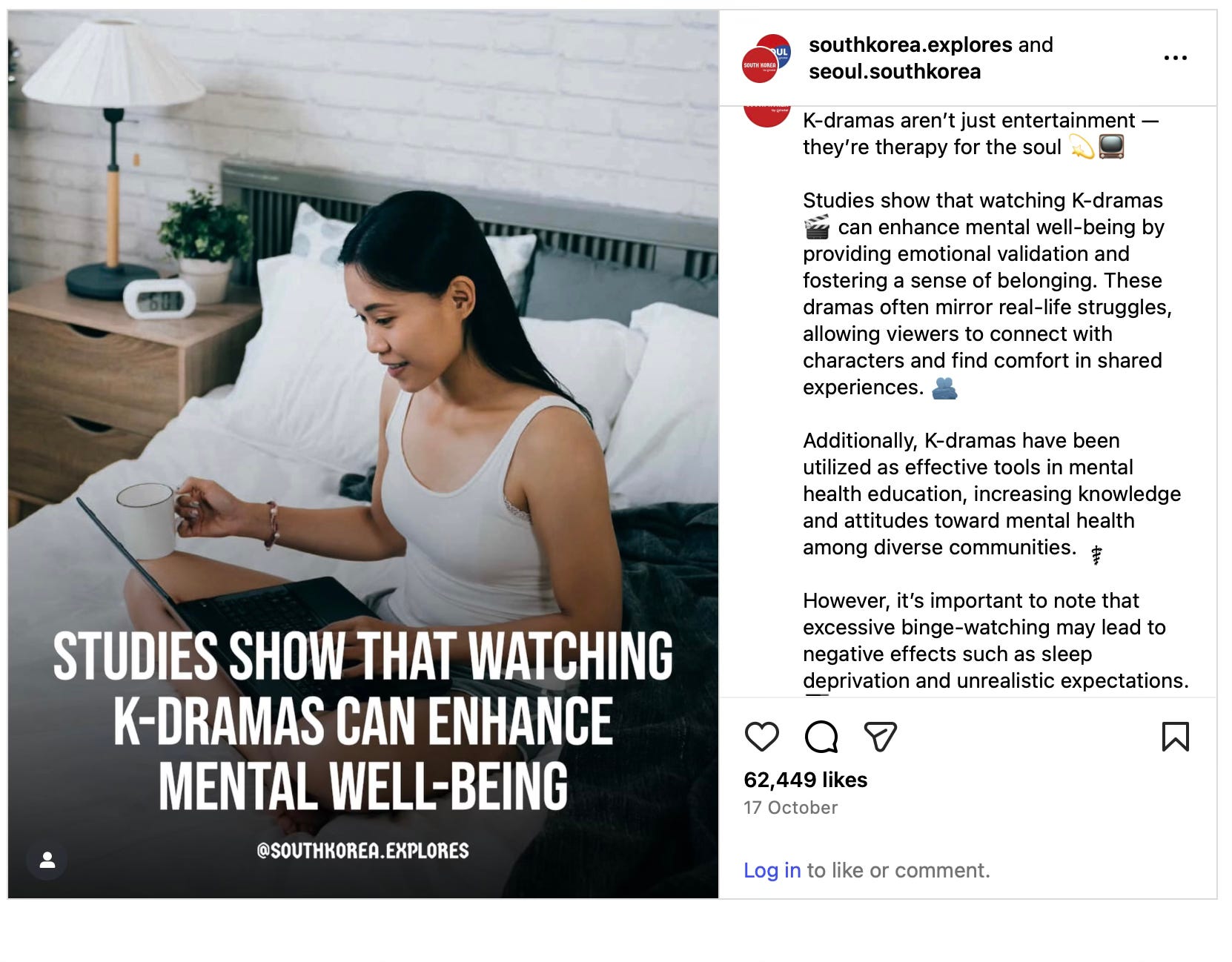 Regarder des dramas serait bon pour la santé mentale. En reproduisant des situations “semblables” au quotidien, les dramas créeraient un sentiment d’appartenance et de réconfort pour ceux qui les regardent.