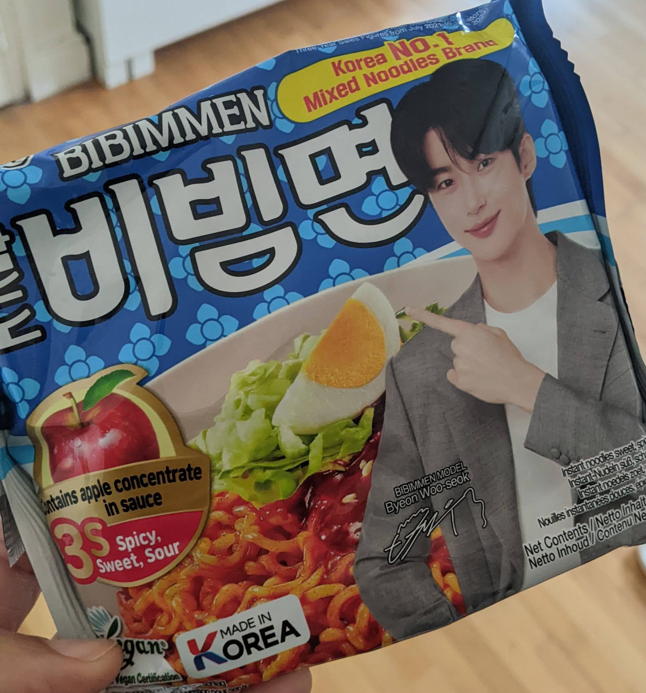 Pour ceux qui ne connaissent pas : ce sont des nouilles froides coréennes (비빔면) avec une sauce piquante-sucrée trop bonne !
