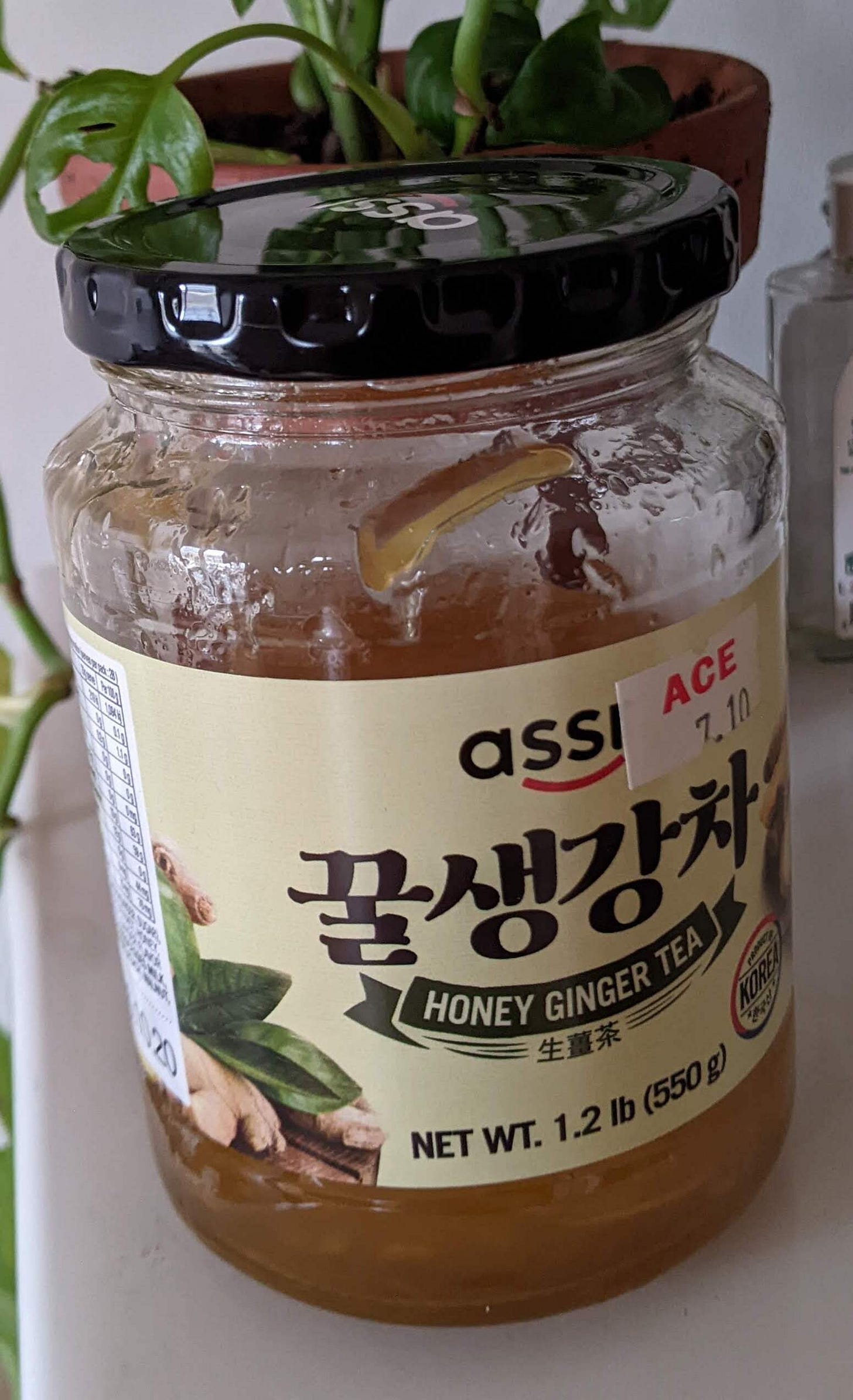Tangle Bulgogi Ginger Honey Tea. Quand je prenais mes cours, c’était l’un de mes thés préférés à la caféria, mais en plus il se trouve que c’est d’une efficacité redoutable contre l’extinction de voix et sûrement le rhume de façon générale.